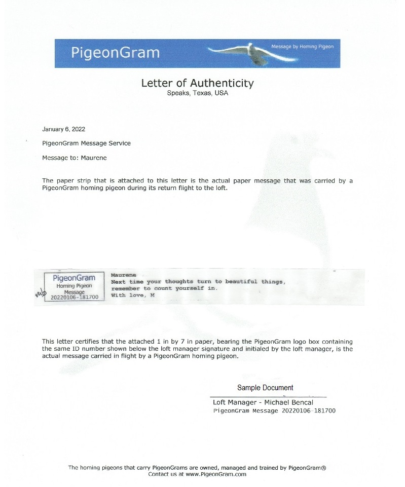 Sample PigeonGram
